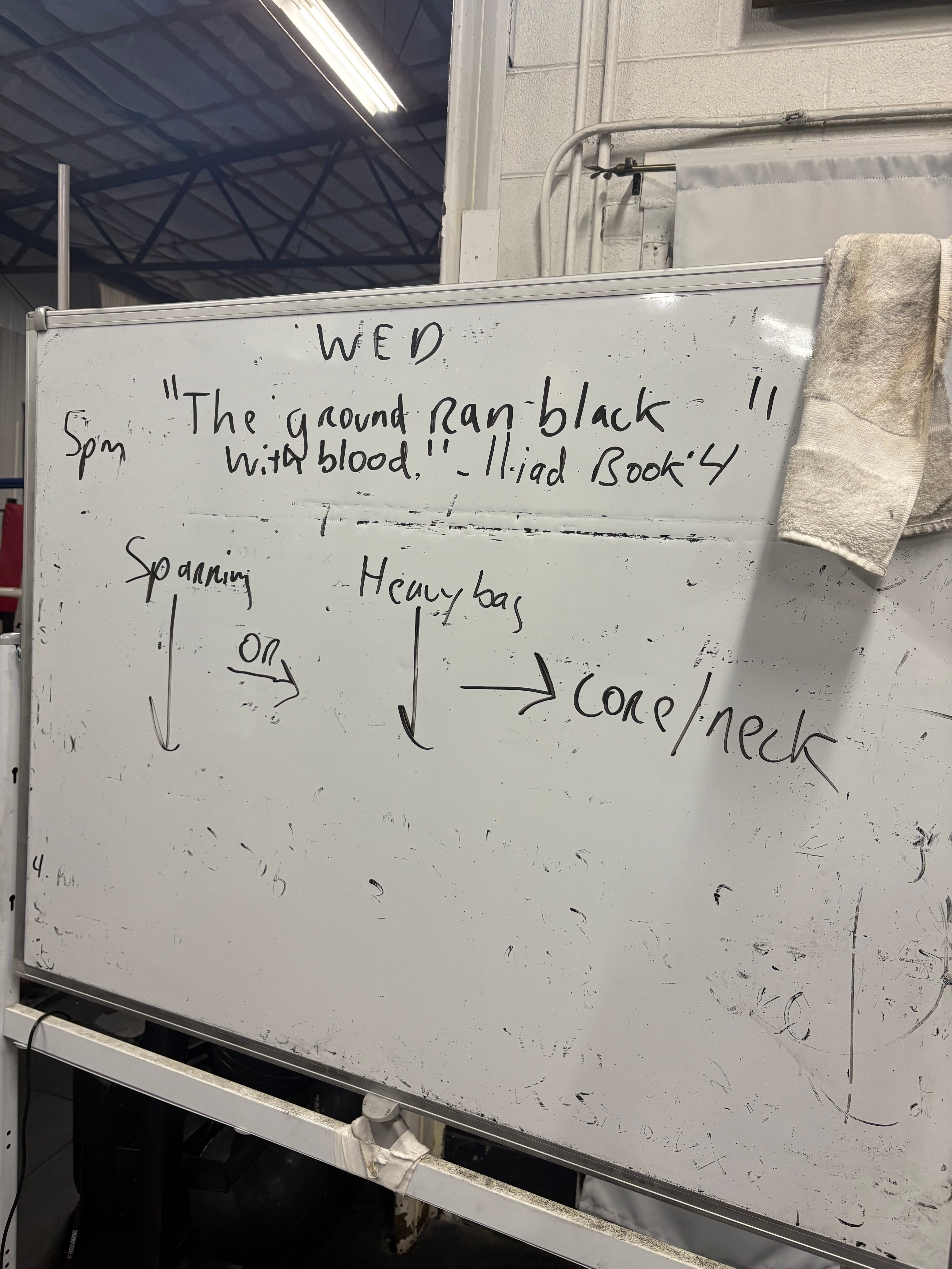 In the last week of August, I fractured my hand. For weeks I had stitches, a splint. I never missed a day of training–I’m scheduled to fight in late October–but I had to work with some constraints. I could practice footwork, head movement, conditioning, and punches with my lead hand. But I could not throw anything with my right hand or use my right hand to block punches. Defensively you use your backhand to parry jabs and to block hooks to the head; I had to rely on other techniques to evade those punches.